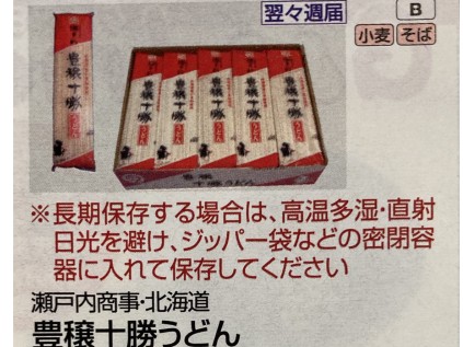 豊穣十勝うどん(乾麺) 2022/11/07 取り寄せ品 豊穣十勝うどん 【4442】250g 355円【4459】250g×5 1,568円【4466】1箱(250g×20) 6,010円 うまい麺が中止・・... [続きはこちら]